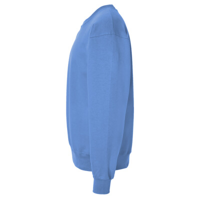 Air jet spun yarn – softer feel and no pill, double-needle stitching, set in sleeves. 1x1 athletic rib with Spandex, quarter-turned to eliminate centre crease.